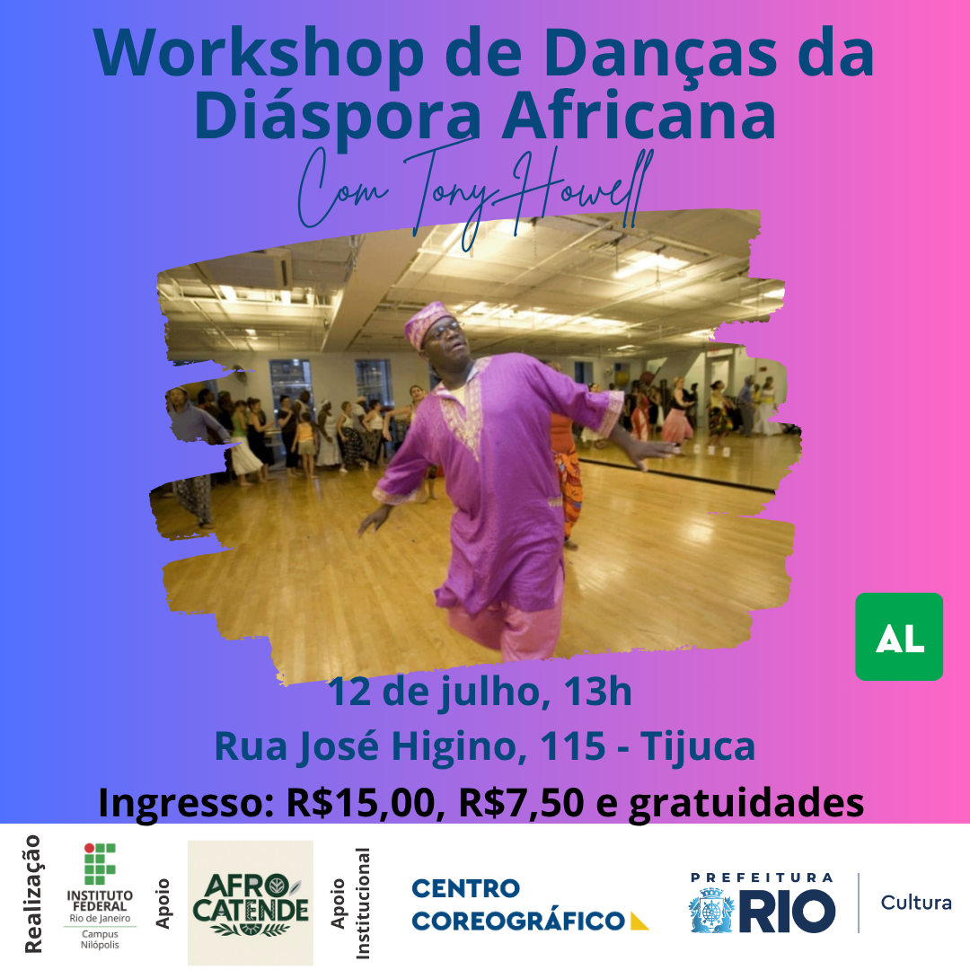 Resumo: Tony Howell traz para o Brasil a oficina “Danças da Diáspora Africana”. Esta oficina explora ritmos de diversas culturas, incluindo Yenvalou, do Haiti, La Conga, de Cuba, e uma deliciosa mistura de outros ritmos e movimentos. Tony Howell incorpora a técnica Dunham aos movimentos folclóricos associados a essas regiões. Junte-se a nós para uma tarde emocionante repleta de dança e ritmo com Tony Howell!