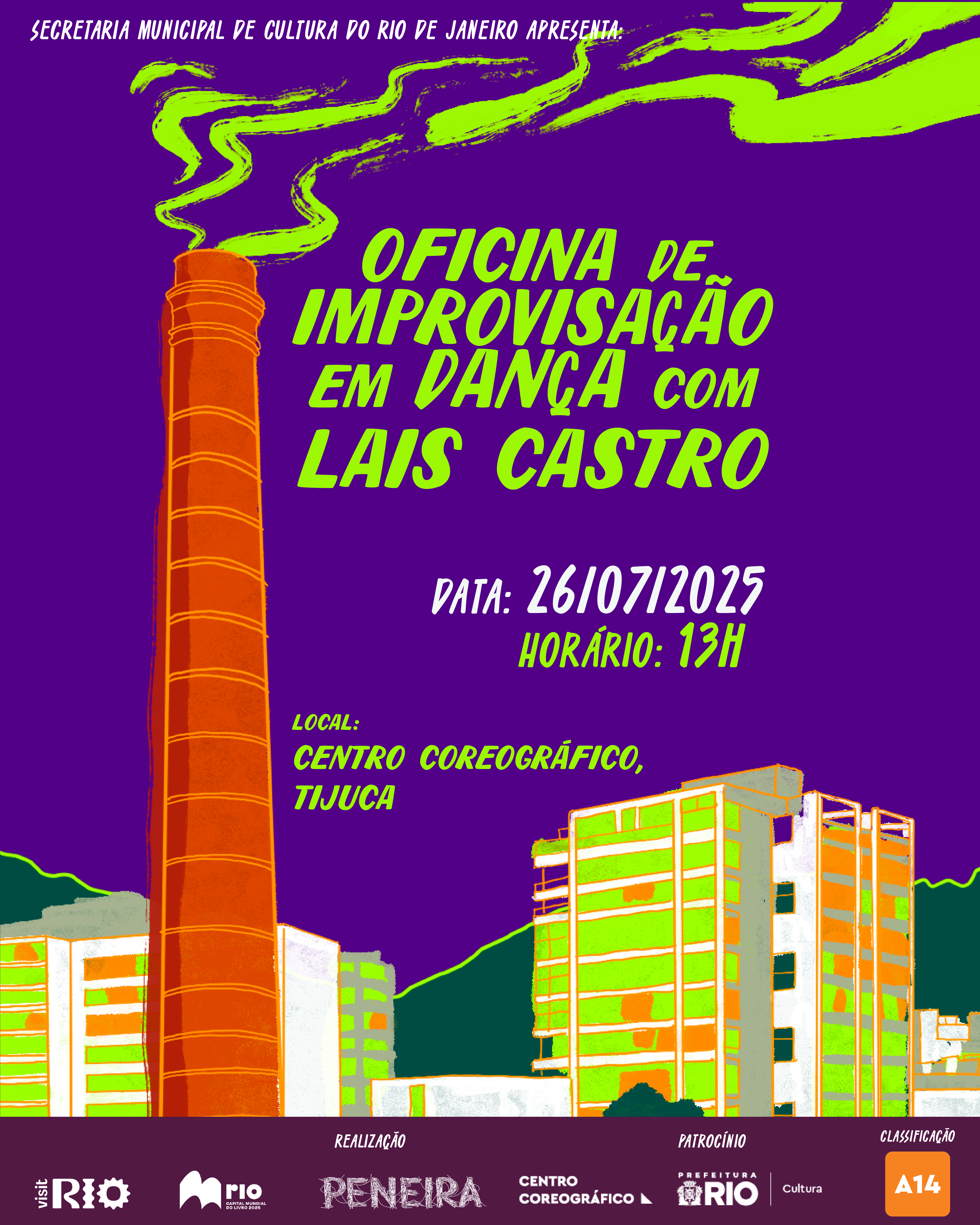 Resumo: Oficina de improvisação em dança com Lais Castro. A partir do método “Fabulações do Território” desenvolvido pelo Grupo Peneira, a oficina propõe a criação de partituras corporais articulando as artes da cena por meio da reformulação e do rompimento das fronteiras entre território, casa e rua, real e virtual. Deste modo, memória, corpo e cidade são dispositivos para a criação coletiva.