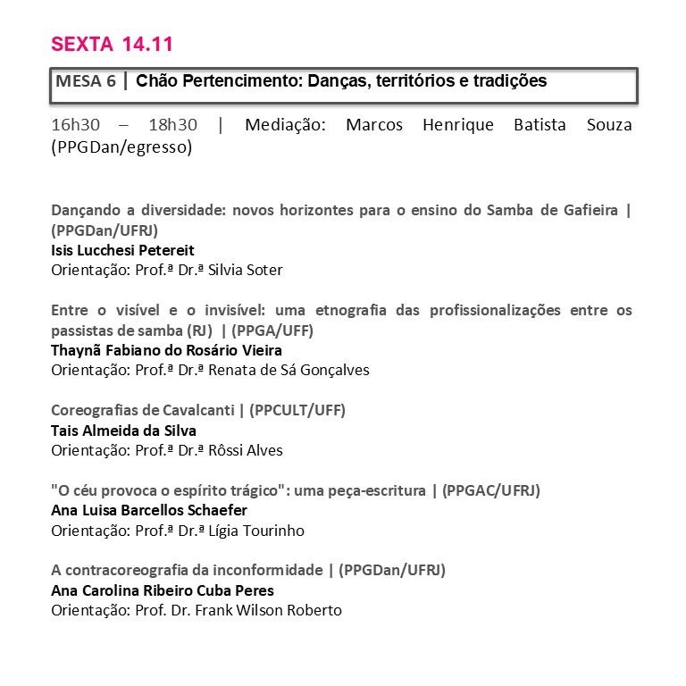 Parceria: PPGDan/UFRJ e Centro Coreográfico da cidade do Rio de Janeiro.