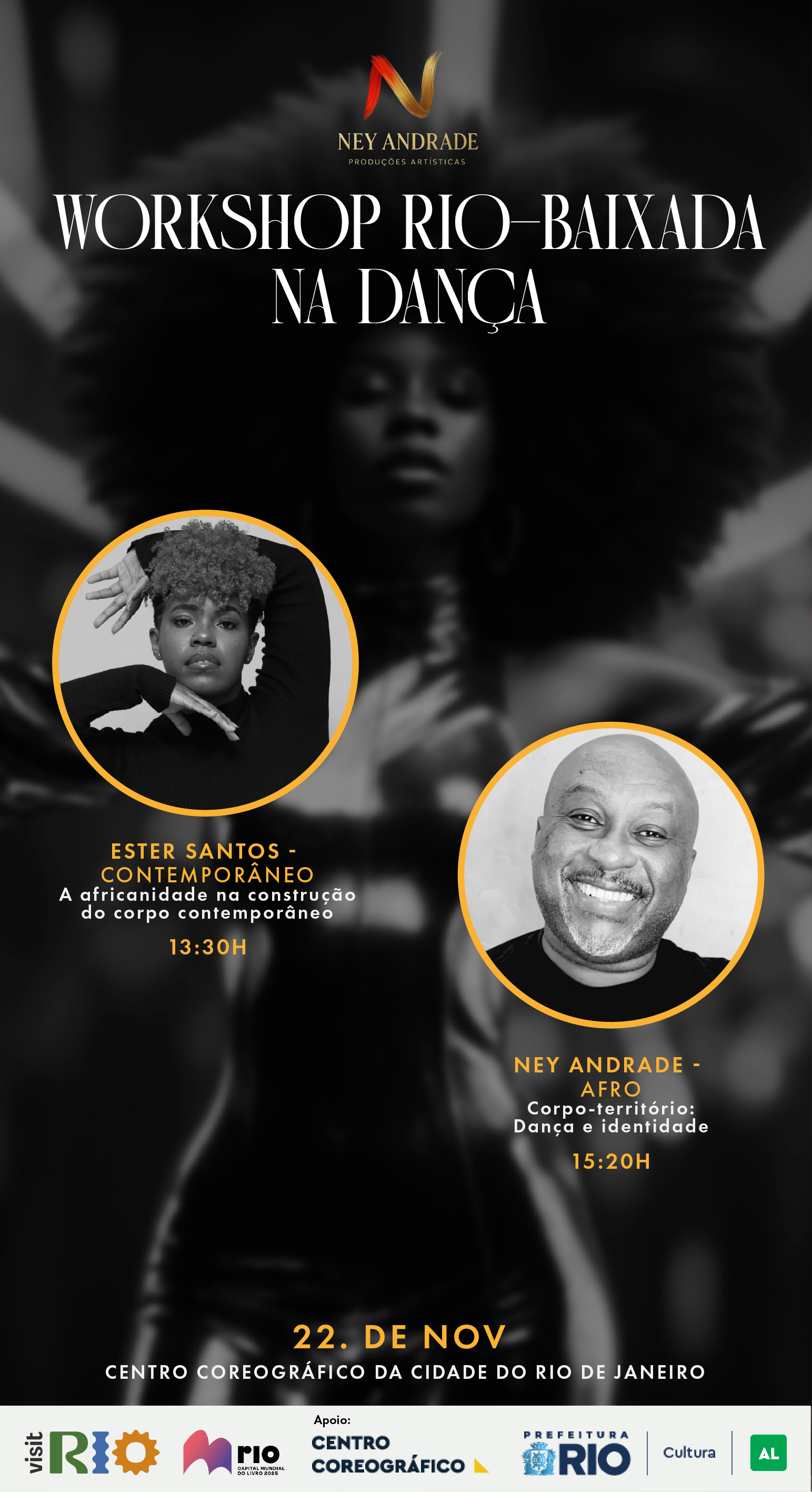 Ney Andrade – Coreógrafo e pesquisador de danças de matriz africana, tem uma trajetória de mais de 30 de dedicação a dança, tendo ministrado aulas nas mais variadas escolas de dança. Atualmente é diretor e coreógrafo da Cia de Dança Afro Contemporânea Ney Andrade.