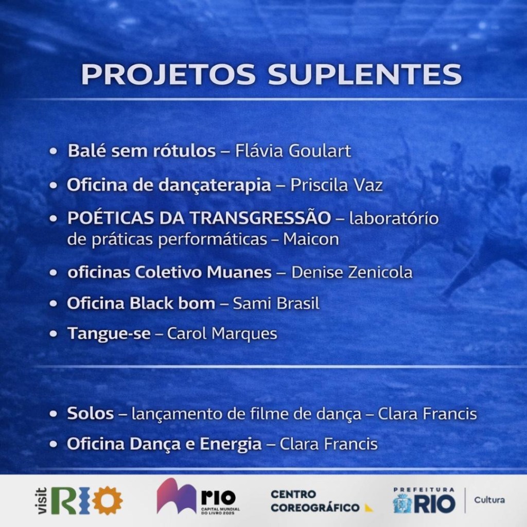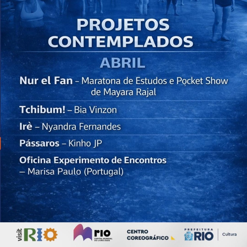 O Centro Coreográfico da Cidade do Rio de Janeiro divulga o resultado da seleção de projetos inscritos no formulário de pauta para os meses de abril, maio e junho de 2026.