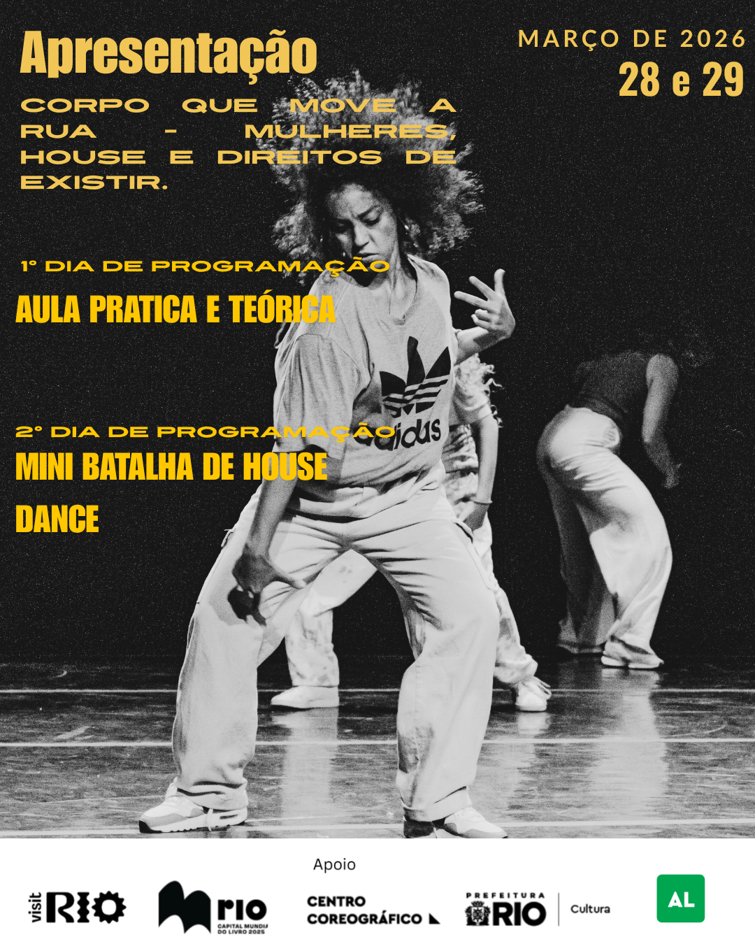O espetáculo “Corpo que Move a Rua: Mulheres, House e Direitos de Existir” apresenta uma performance de house dance (dança house) que destaca o corpo feminino com sua força, resistência e pertencimento. Criado para espaços públicos, o projeto é adaptável a diversos ambientes, incluindo o de palcos em teatros fechados. Com elenco formado por quatro mulheres em um coletivo de maioria negra, em um momento político onde discussões sobre o direito de existir e viver de mulheres têm ganhado destaque na sociedade, a proposta reforça a narrativa de que dançar, além de uma forma de se expressar, é também um direito e uma forma de resistência.