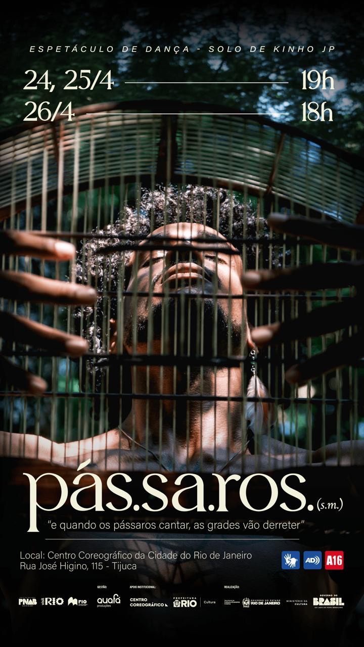 PÁSSAROS é uma performance solo de dança contemporânea do artista carioca Kinho JP. A obra investiga as complexidades da experiência negra e periférica na cena contemporânea, articulando corpo, memória e território.