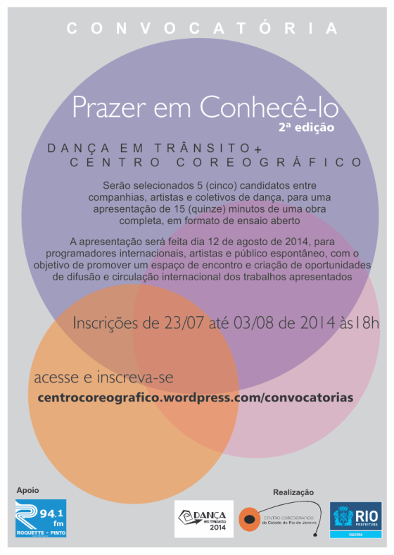 CONVOCATÓRIA – PRAZER EM CONHECÊ-LO 2ª EDIÇÃO O Dança em Trânsito, em parceria com o Centro Coreográfico da Cidade do … Mais