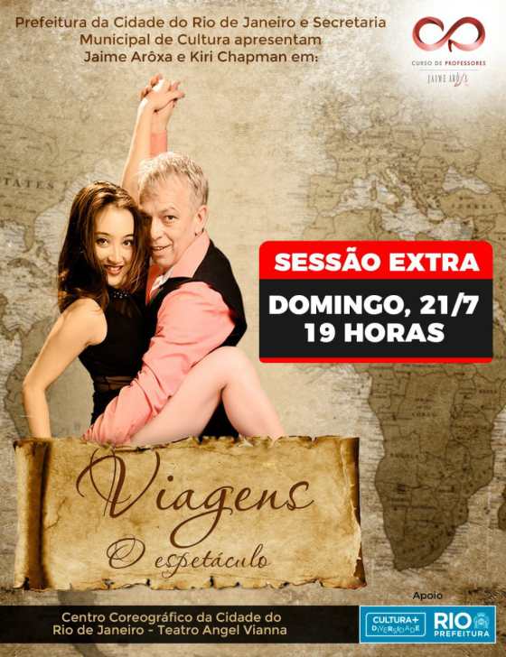 Viagens é um espetáculo de dança em que Jaime Arôxa e Kiri Chapman desfilam ritmos de dança de várias partes…