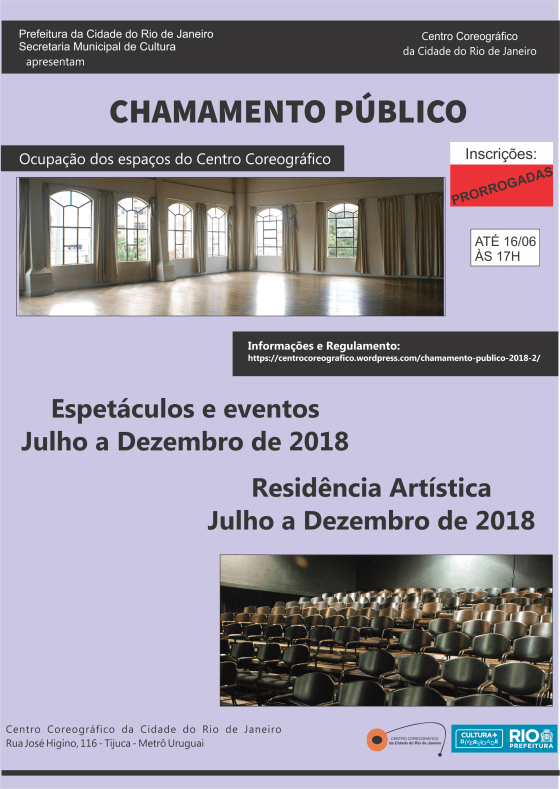As inscrições para o Chamamento Público das Residências Artísticas e de Espetáculos e Eventos, de Julho a Dezembro de 2018,…