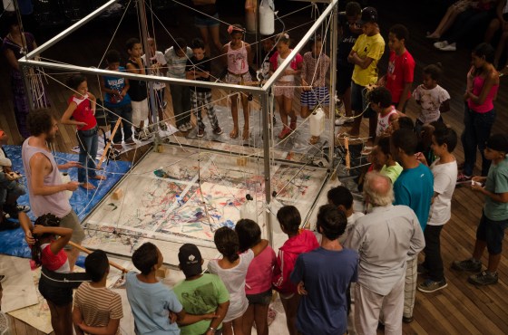 A Máquina de Desenhar é uma traquitana mirabolante que serve para criar pinturas coletivas. A cada vez oito pessoas do…