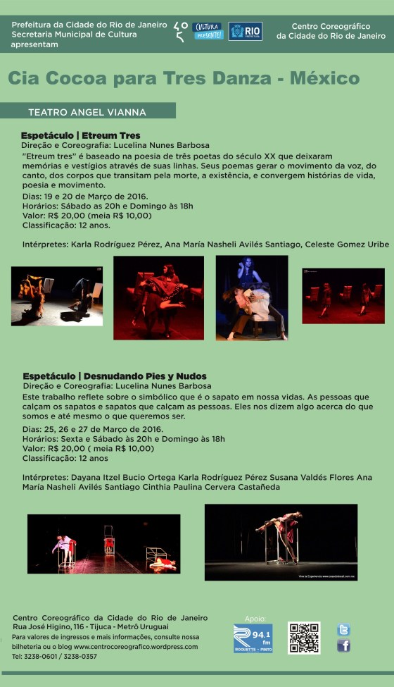 A companhia mexicana Cocoa Para Tres Danza apresenta dois espetáculos este mês no Centro Coreográfico! ETREUM TRES “Etreum Tres” é…