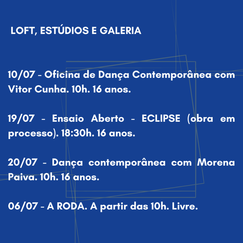Saiu a programação de julho do Centro Coreográfico! Tem seminário, mostra, festival, espetáculos, oficinas, palestras e exposição! Tudo conduzido pela e para a dança em construções que reverberam para muitos outros lugares e fazeres!