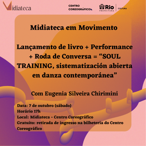 Midiateca em Movimento: Lançamento de livro + Performance + Roda de Conversa = “SOUL TRAINING, sistematización abierta en danza contemporánea”, com Eugenia Silveira Chirimini