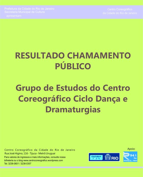 RESULTADO CHAMAMENTO PÚBLICO PARA GRUPO DE ESTUDOS DO CENTRO COREOGRÁFICO CICLO DANÇA E DRAMATURGIAS